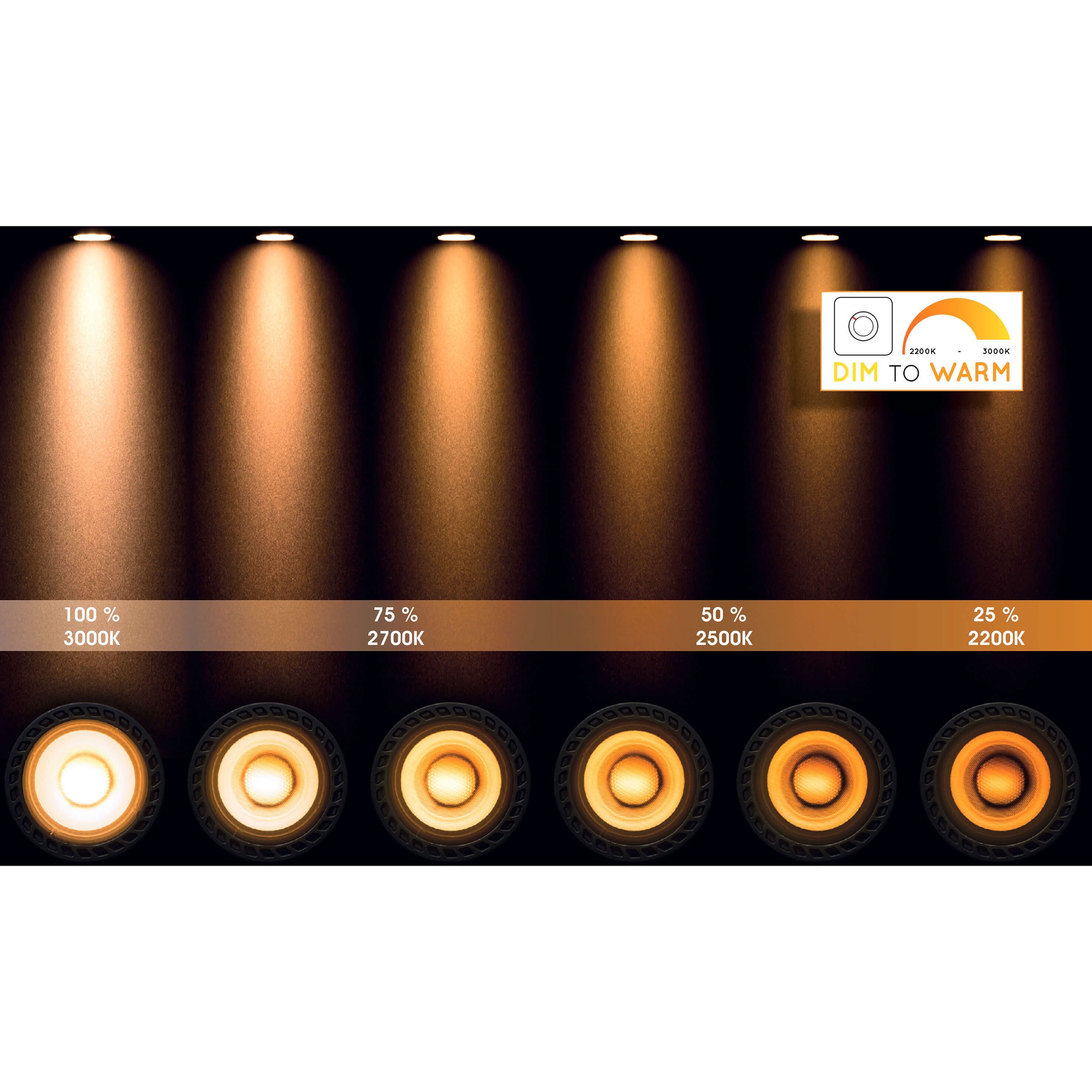 | Lichtfarbe | extra warmweiß bis warmweiß (2200–3000K) |