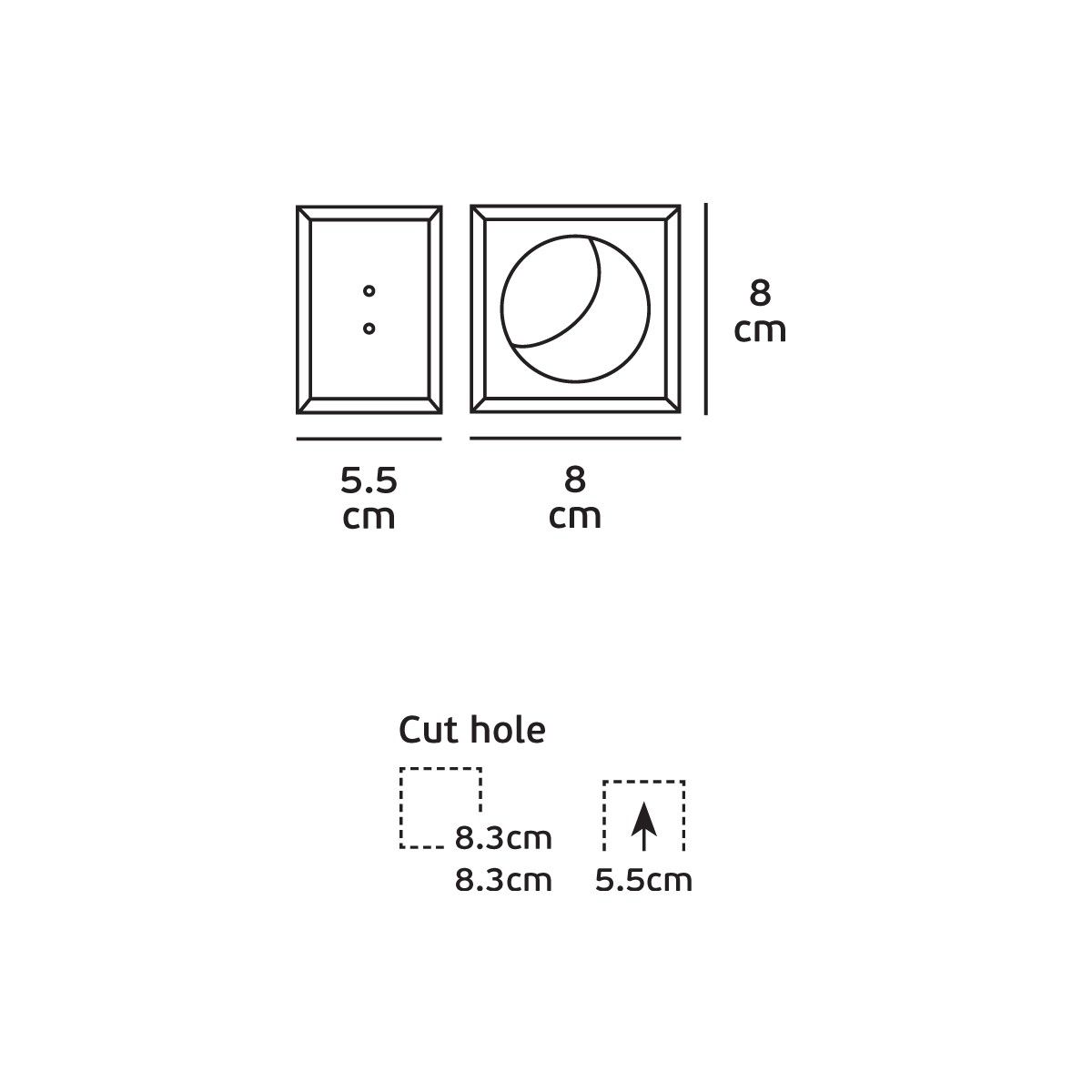 Zusätzliche Informationen | Aufgrund ihrer Gipsstruktur ist die Leuchte perfekt überstreichbar. Die für die Montage der Leuchte vorgesehene Mindestöffnung beträgt 8,3 x 5,5 x 8,3 cm. |
